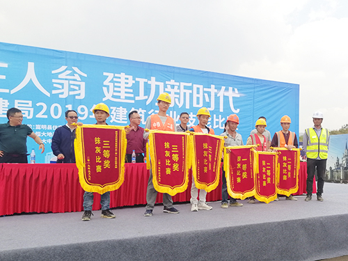 為營造建筑行業勞動者學技術、練本領、比技能的濃厚氛圍,培育精益求精的工匠精神,嵩明縣住建局于2019年5月9日舉辦2019年建筑行業技能比賽,云南建豐建筑工程有限公司空港俊發城項目部派人員積極參加技能比賽,并獲得抹灰比賽二等獎、安全防護佩戴比賽二等獎。