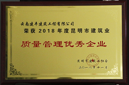 【建豐建筑】2018昆明市建筑業質量管理優秀企業