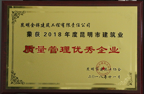 【金鋅市政】2018昆明建筑業“質量管理優秀企業”