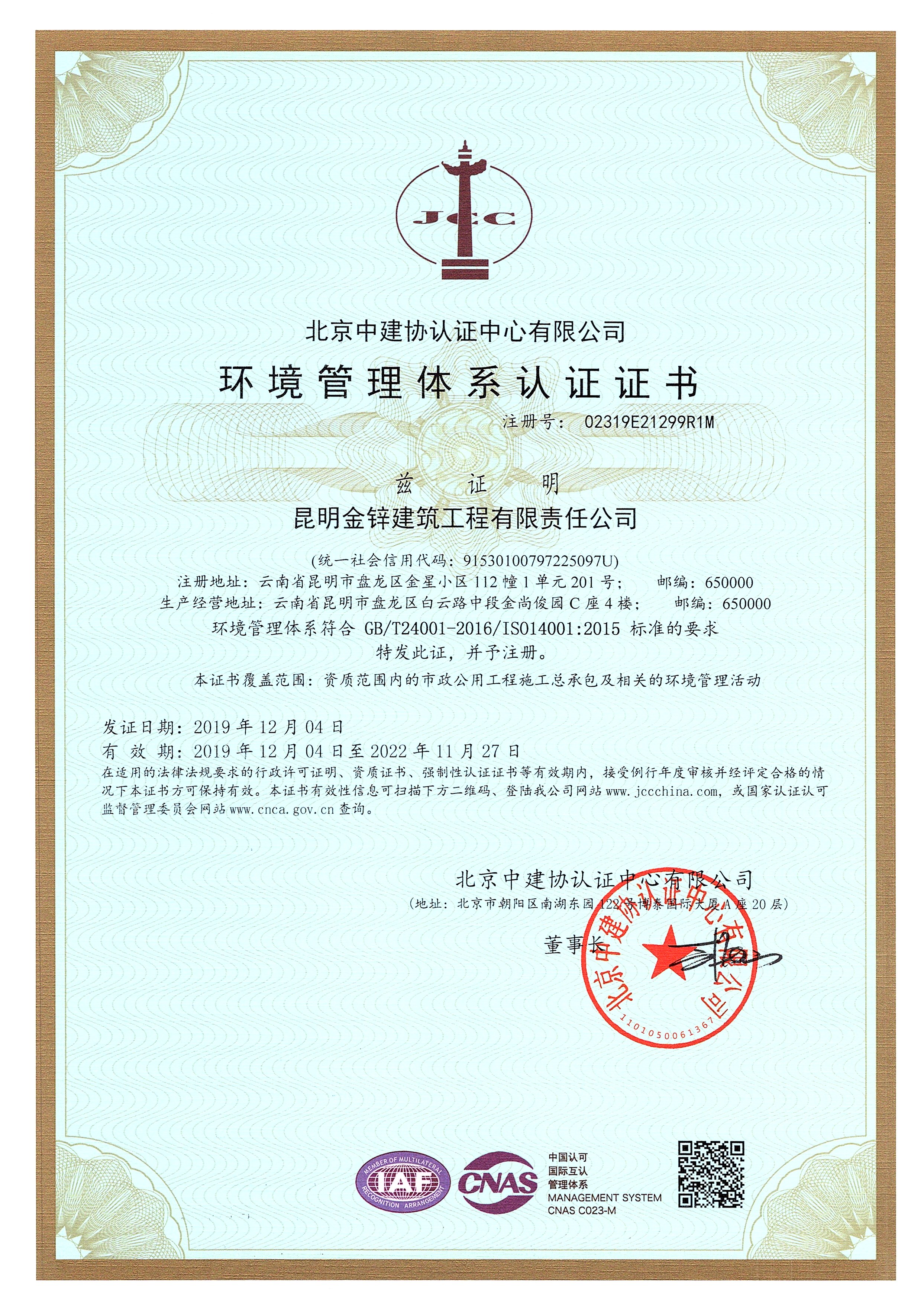 【金鋅市政】職業健康安全管理體系認證證書正本